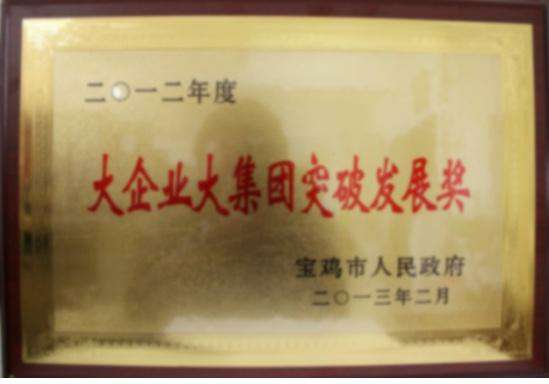 为了表彰先进,树立典型,针对2012年度宝鸡市工业战线良好的发展形式,市政府决定对纳税贡献大的企业单位和个人予以表彰奖励。由于贡献突出,宝鸡开云手机站官方版网站登录入口-开云(中国)公司获得“大企业大集团突破发展奖“,”纳税突出贡献奖“ 2个奖项和30万元的奖金。本次表彰大会中,宝鸡开云手机站官方版网站登录入口-开云(中国)公司是”大企业大集团突破发展奖“的唯一获奖单位。