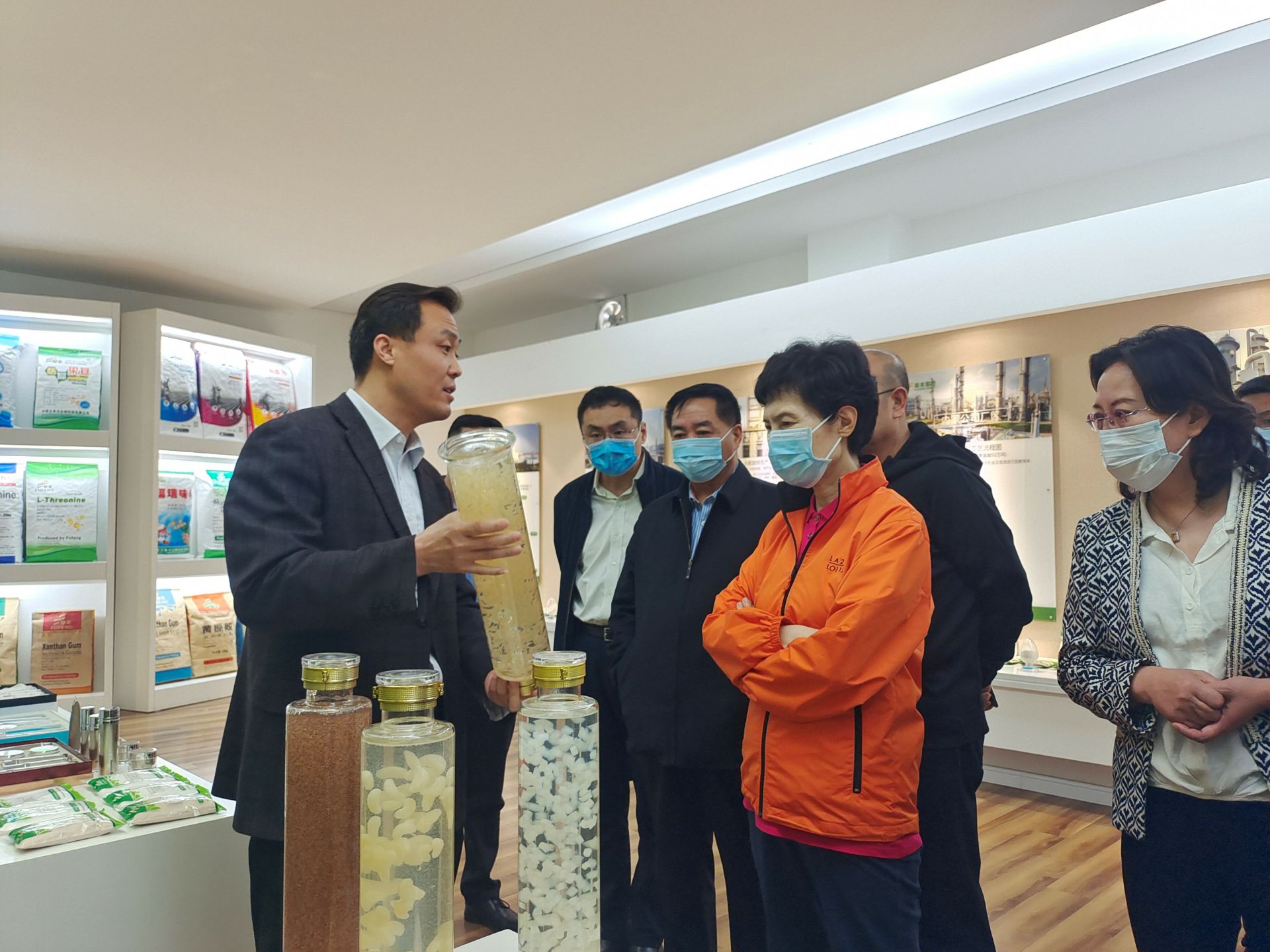 在公司展厅 , 高会长一行人认真听取了李总对于内蒙开云手机站官方版网站登录入口-开云(中国)公司的生产、经营情况以及国际贸易现状的介绍,了解了企业在开展对外贸易中存在的困难和问题。